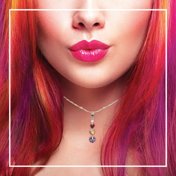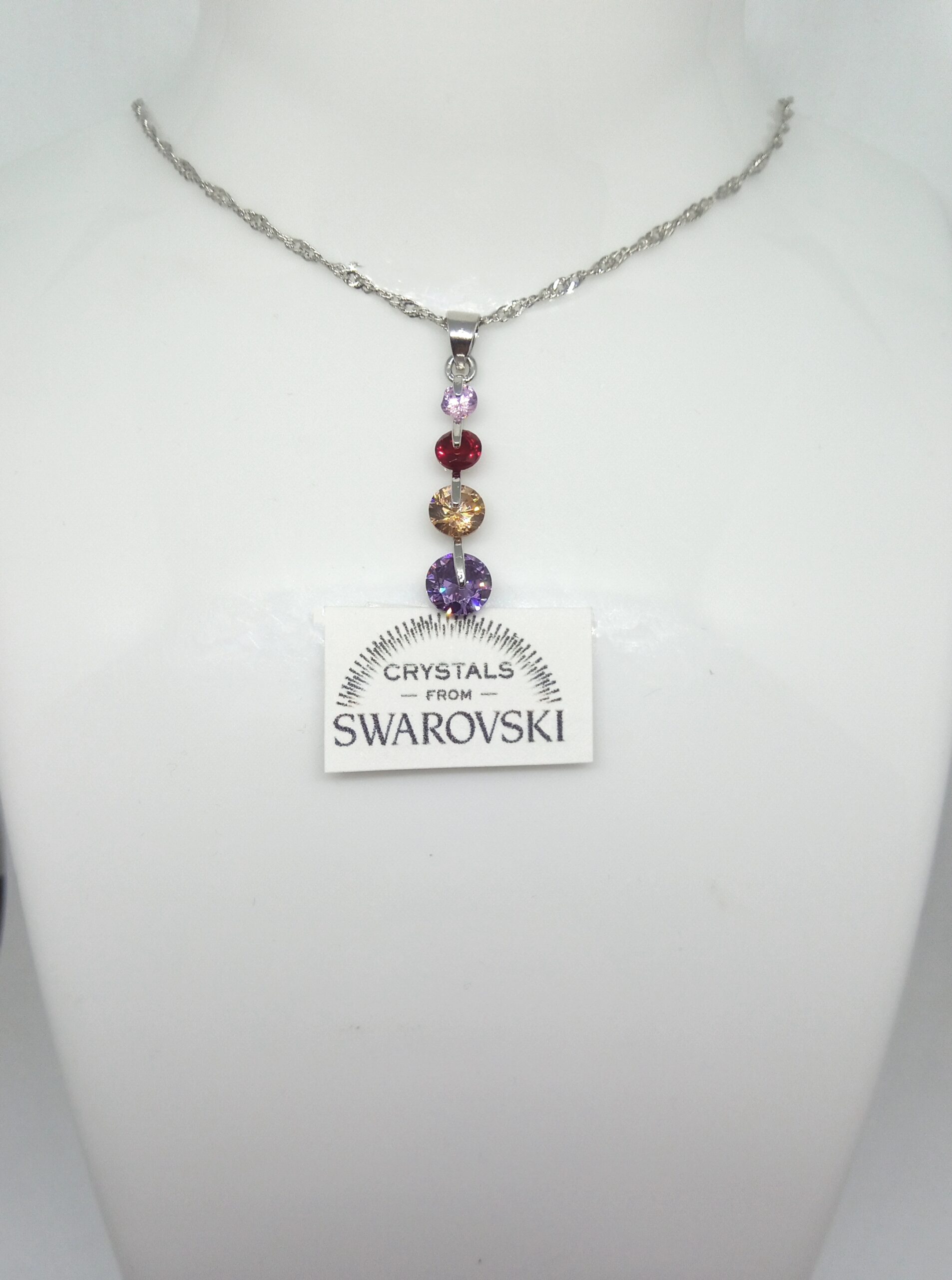 Collana argento marcato lavorata a maglia e ciondolo con cristalli swarovski multicolori