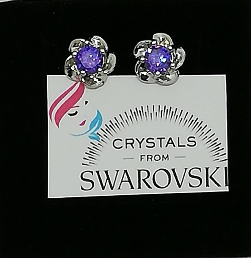Stupendi orecchini puntoluce in argento marcato 925 con cristalli Swarovski taglio Round Brilliant, colore ametista